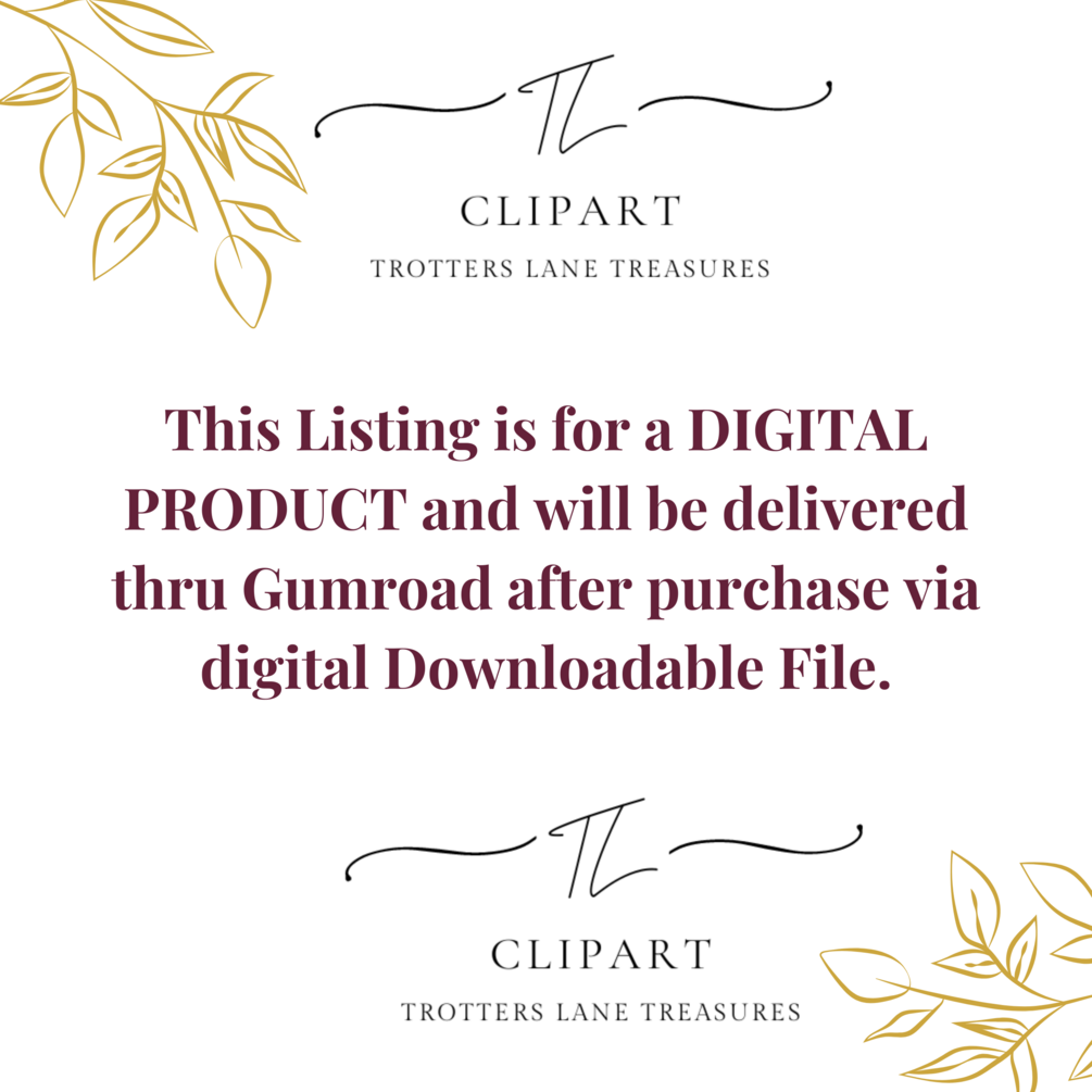 This is a digital product. No physical items will be shipped. Your files will be available for download immediately after purchase, so you can get started right away! Be sure to check your Email and your Purchases on Gumroad to access the pdf with helpful information and the link to your clipart pack.
